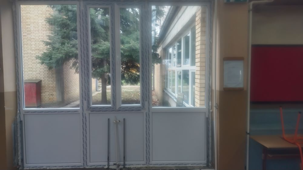 Настављени су радови замене прозора. Замењени су прозори у кабинету 17 где се налазе деца у продуженом боравку, на крају наставничког ходника и један елемент у холу. У току године се планирају даљи радови замене прозора и врата који су још у челичној конструкцији.